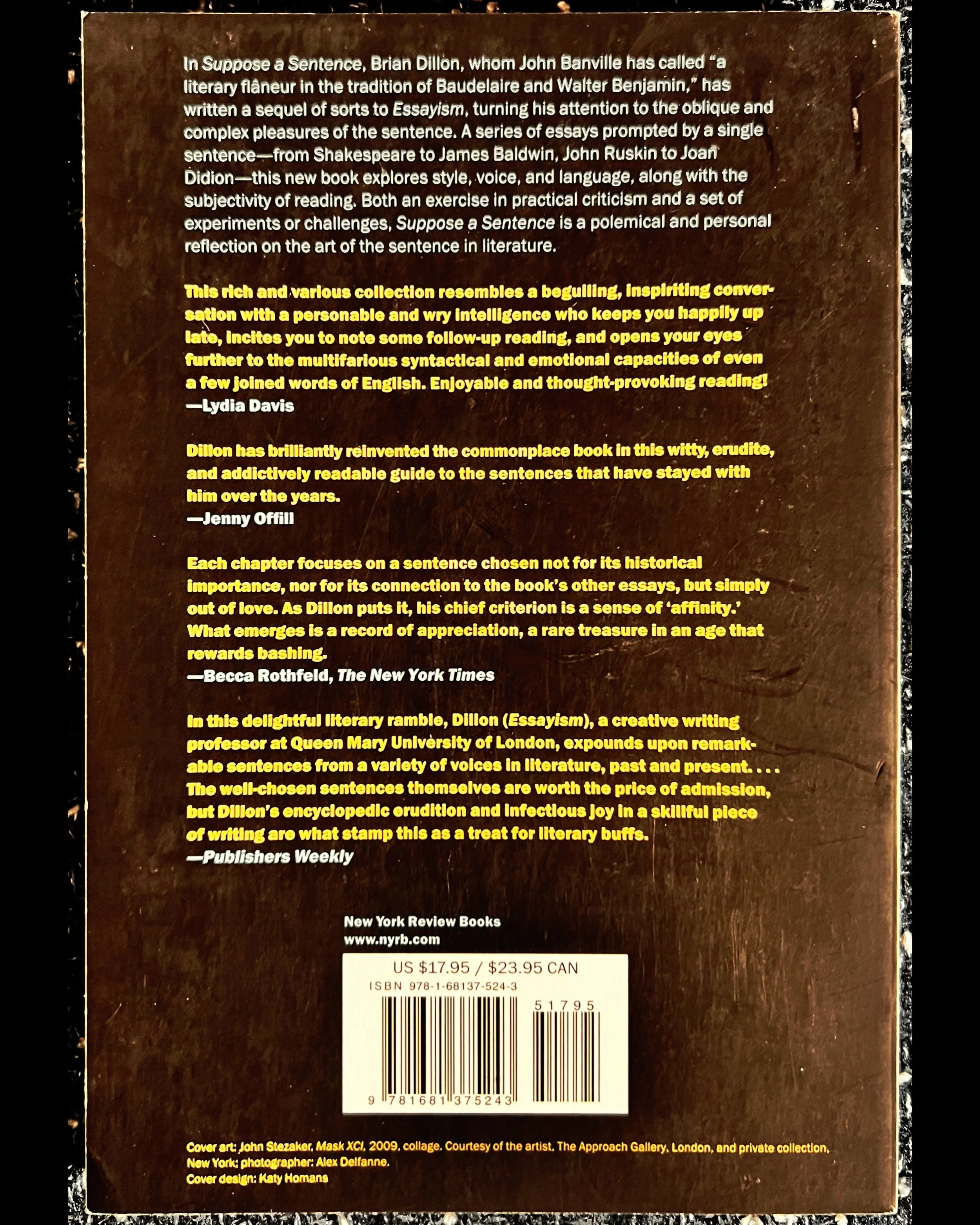 New York Review Books Compulsory Games - Robert Aickman $10.00 Add To Cart Added! The Inferno of Dante Alighieri $10.00 Add To Cart Added! Purgatorio - Dante Alighieri $20.00 Add To Cart Added! The Long Ships - Frans G. Bengtsson $12.00 Add To Cart Added! Mouchette - Georges Bernanos $10.00 Add To Cart Added! Asleep in the Sun - Adolfo Bioy Casares $10.00 Add To Cart Added! The Invention of Morel - Adolfo Bioy Casares $9.00 Add To Cart Added! Notes on the Cinematograph - Robert Bresson $9.00 Add To Cart Added! The Life and Opinions of Zacharias Lichter - Matei Călinescu $9.00 Add To Cart Added! Memoirs from Beyond the Grave: 1768-1800 - François-René de Chateaubriand $10.00 Add To Cart Added! Black Wings Has My Angel - Elliott Chaze $10.00 Add To Cart Added! Peasants and Other Stories - Anton Chekhov $10.00 Add To Cart Added! Suppose a Sentence - Brian Dillon $14.00 Sold Out Sold Out Added! Grief Lessons: Four Plays - Euripides $10.00 Add To Cart Added! Novels in Three Lines - Félix Fénéon $10.00 Add To Cart Added! The Recognitions - William Gaddis $24.00 Add To Cart Added! Fat City - Leonard Gardner $10.00 Add To Cart Added! Dead Souls - Nikolai Gogol $10.00 Add To Cart Added! The Black Spider - Jeremias Gotthelf $10.00 Add To Cart Added! Idiocy - Pierre Guyotat $25.00 Add To Cart Added! Warlock - Oakley Hall $12.00 Add To Cart Added! Twenty Thousand Streets Under the Sky - Patrick Hamilton $10.00 Add To Cart Added! Dancing Lessons for the Advanced in Age - Bohumil Hrabal $10.00 Add To Cart Added! The Little Town Where Time Stood Still - Bohumil Hrabal $10.00 Add To Cart Added! The Expendable Man - Dorothy B. Hughes $10.00 Add To Cart Added! In a Lonely Place - Dorothy B. Hughes $10.00 Add To Cart Added! Fatale - Jean-Patrick Manchette $9.00 Add To Cart Added! Ivory Pearl - Jean-Patrick Manchette $10.00 Add To Cart Added! Nada - Jean-Patrick Manchette $10.00 Add To Cart Added! The N'Gustro Affair - Jean-Patrick Manchette $10.00 Add To Cart Added! Afloat - Guy de Maupassant $10.00 Add To Cart Added! Alien Hearts - Guy de Maupassant $10.00 Add To Cart Added! Like Death - Guy de Maupassant $10.00 Add To Cart Added! Typewriters, Bombs, Jellyfish: Essays - Tom McCarthy $12.00 Add To Cart Added! Notes of a Crocodile - Qiu Miaojin $10.00 Add To Cart Added! Amsterdam Stories - Nescio $10.00 Add To Cart Added! The Story of a Life - Konstantin Paustovsky $14.00 Add To Cart Added! Witch Grass - Raymond Queneau $10.00 Add To Cart Added! Late Fame - Arthur Schnitzler $10.00 Add To Cart Added! The Seventh Cross - Anna Seghers Sale Price: $5.00 Original Price: $10.00 Sale Add To Cart Added! The Rim of Morning: Two Tales of Cosmic Horror - William Sloane $14.00 Add To Cart Added! Rock Crystal - Adalbert Stifter $10.00 Add To Cart Added! The Rider on the White Horse - Theodor Storm $9.00 Add To Cart Added! A Little Primer of Tu Fu - David Hawkes $28.00 Add To Cart Added! Girlfriends, Ghosts, and Other Stories - Robert Walser $10.00 Add To Cart Added! Jakob von Gunten - Robert Walser $10.00 Add To Cart Added! War and the Iliad - Simone Weil and Rachel Bespaloff $15.00 Add To Cart Added! Butcher's Crossing - John Williams $10.00 Add To Cart Added! Journey Into the Past - Stefan Zweig $8.00 Add To Cart Added!